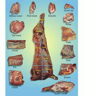 ชิ้นส่วนต่างๆที่ตัดแต่งออกจากซาก